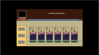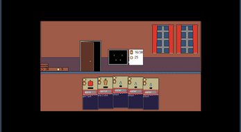 A roguelike deck builder. Feed your customers(robot things) by dragging cards towards them. Cards take money to play . If your money reaches zero you go bankrupt.